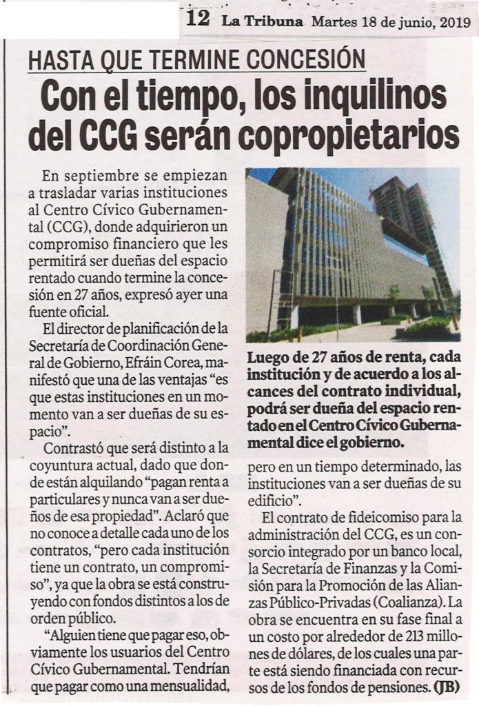 Inversión Pública Con el tiempo, los inquilinos del CCG serán copropietarios Óscar Sánchez Diario: La Tribuna Fecha: 18 de junio de 2019 Página: 12