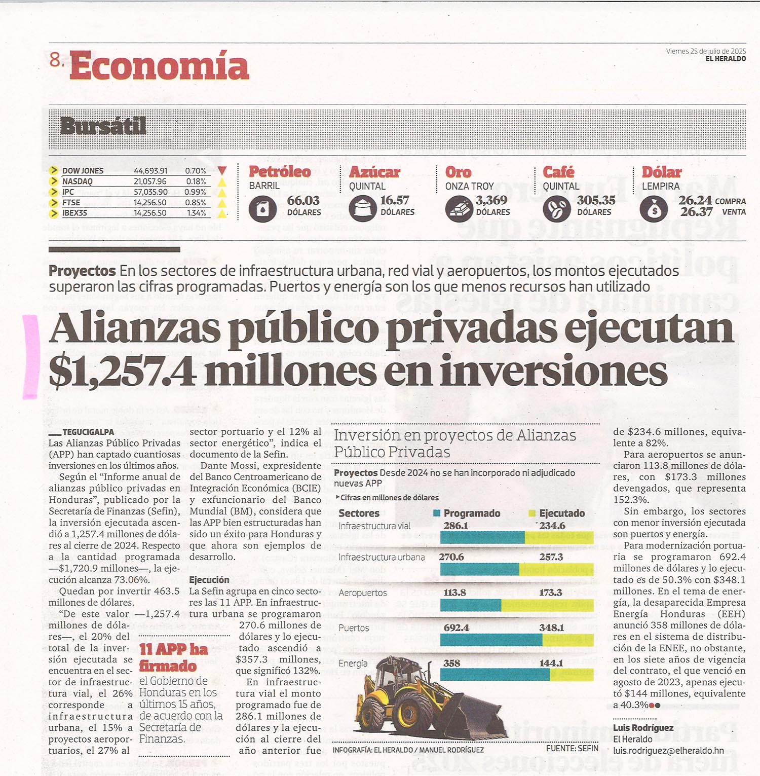 Económico Alianzas público privadas ejecutan $1,257.4 millones en inversiones Meredith Andino Diario: El Heraldo Fecha: 25 de julio de 2025 Página: 8