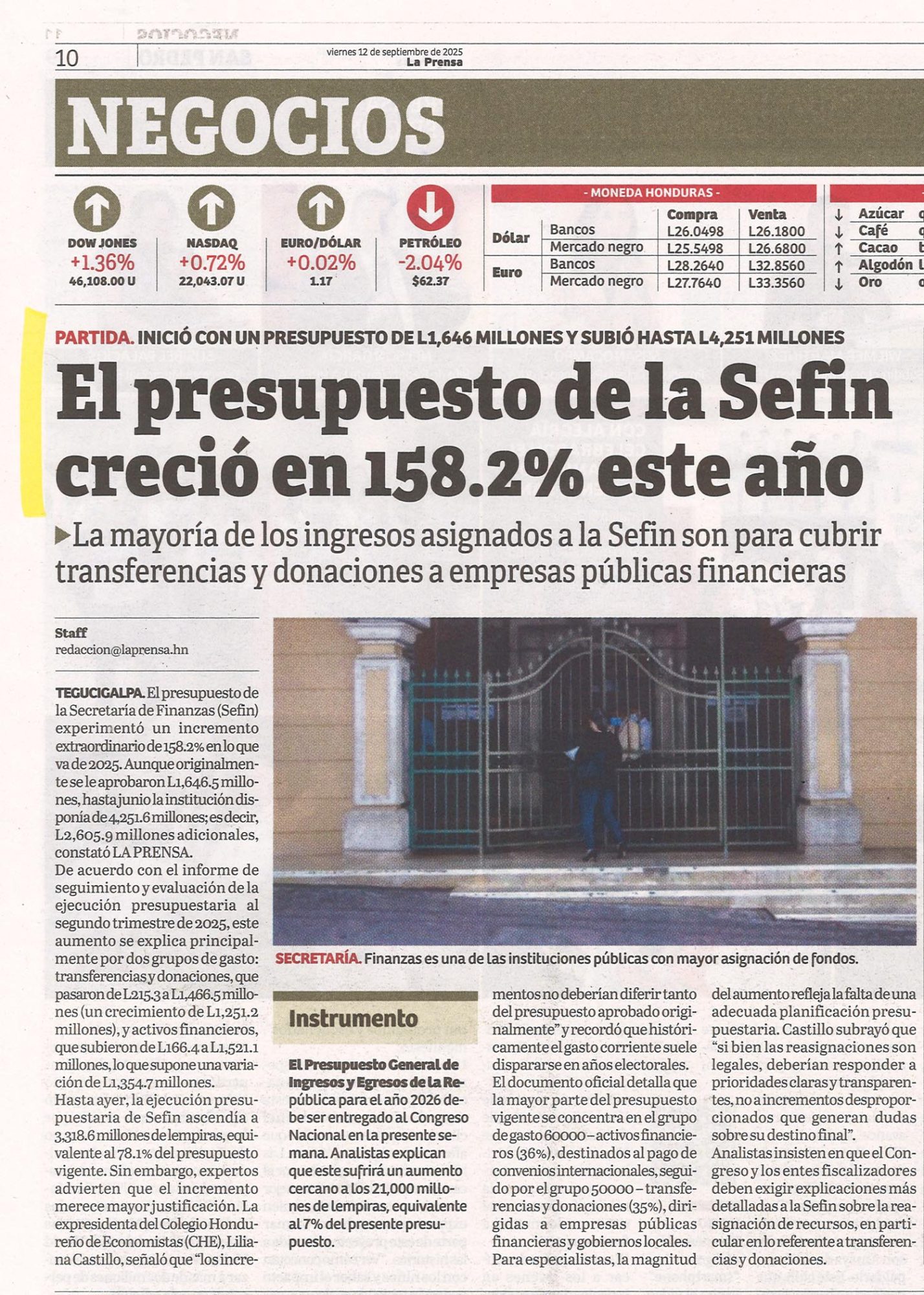 Nacionales El presupuesto de la Sefin creció en 158.2% este año Odeth Aguilera Diario: La Prensa Fecha: 12 Septiembre 2025 Página: 10