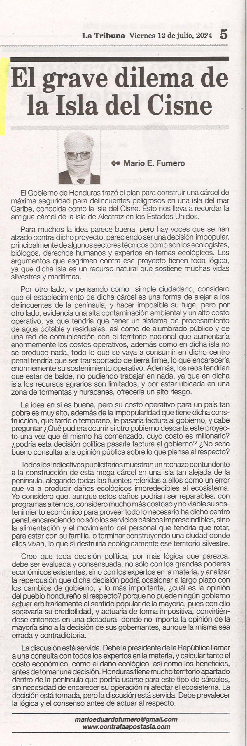Nacionales El grave dilema de la Isla del Cisne Odeth Aguilera Diario: La Tribuna Fecha: 12 Julio 2024 Página: 5